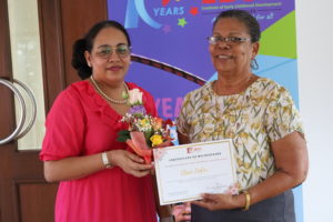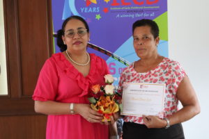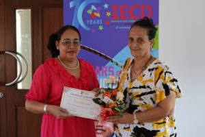 In recognition of their outstanding commitment to young children, each of these women received a token of appreciation at a small ceremony held at the IECD Headquarters in Espace Building, Ile du Port on March 10th. The Chief Executive Officer of IECD, Mrs. Shirley Choppy, the Vice Chairperson of the IECD Board, Mrs. Sonia Mancienne, and IECD management and staff were all present at the ceremony.