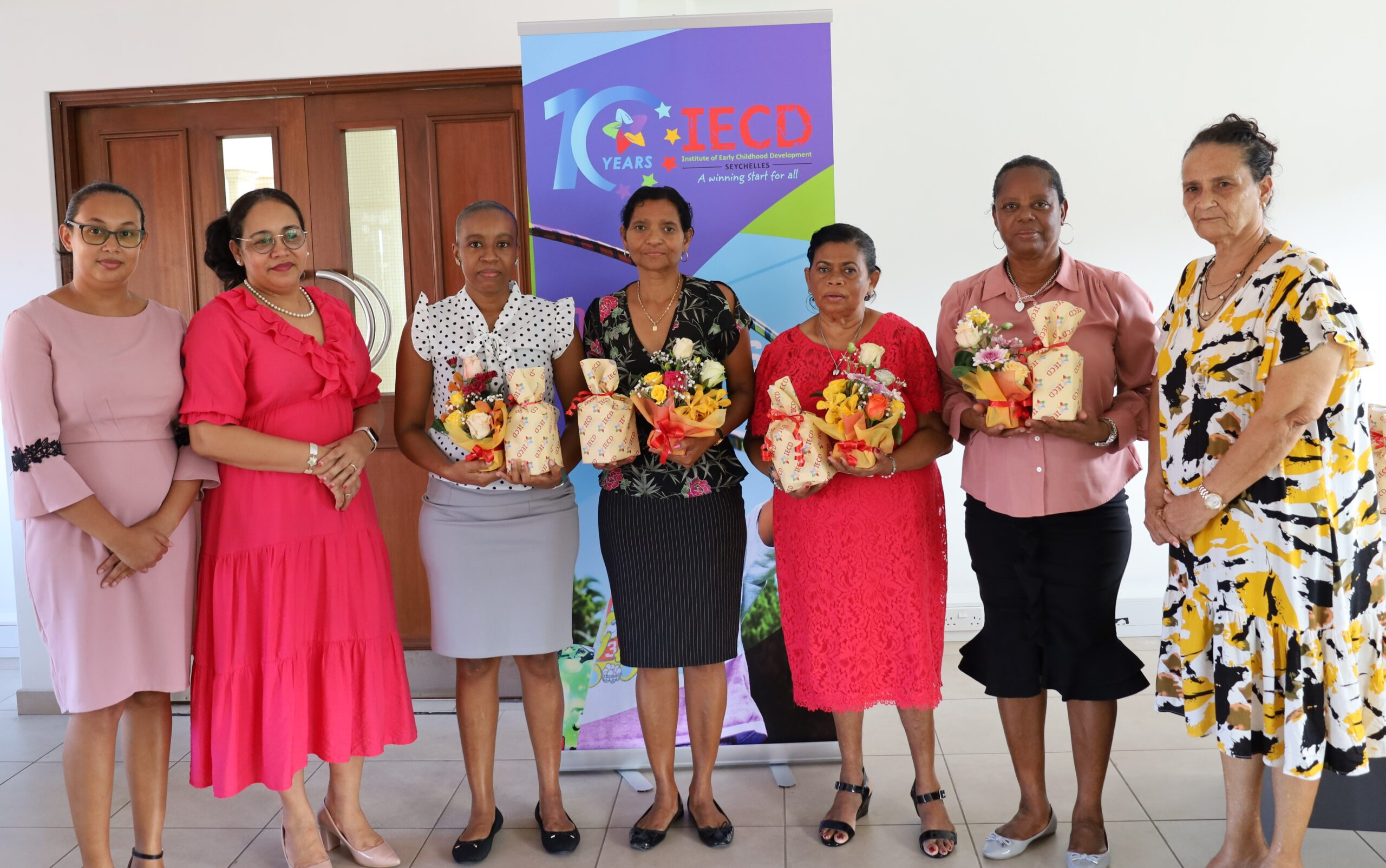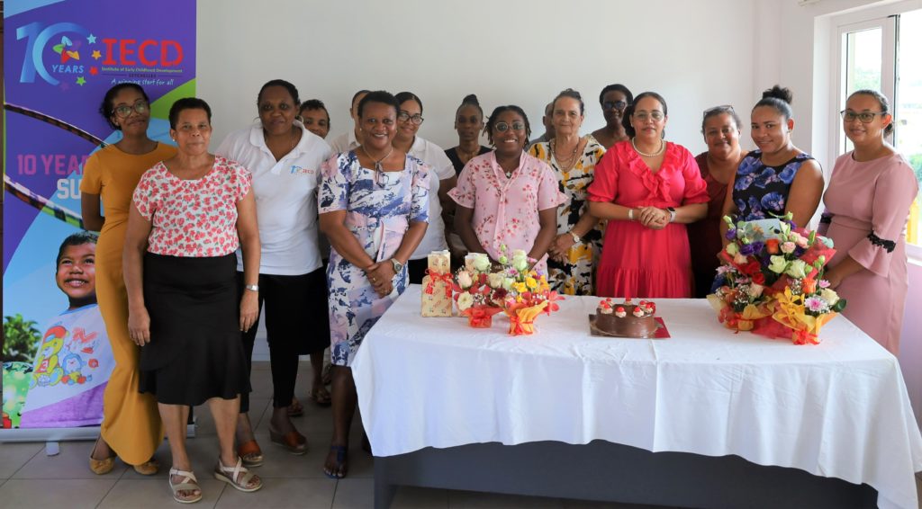 In recognition of their outstanding commitment to young children, each of these women received a token of appreciation at a small ceremony held at the IECD Headquarters in Espace Building, Ile du Port on March 10th. The Chief Executive Officer of IECD, Mrs. Shirley Choppy, the Vice Chairperson of the IECD Board, Mrs. Sonia Mancienne, and IECD management and staff were all present at the ceremony.