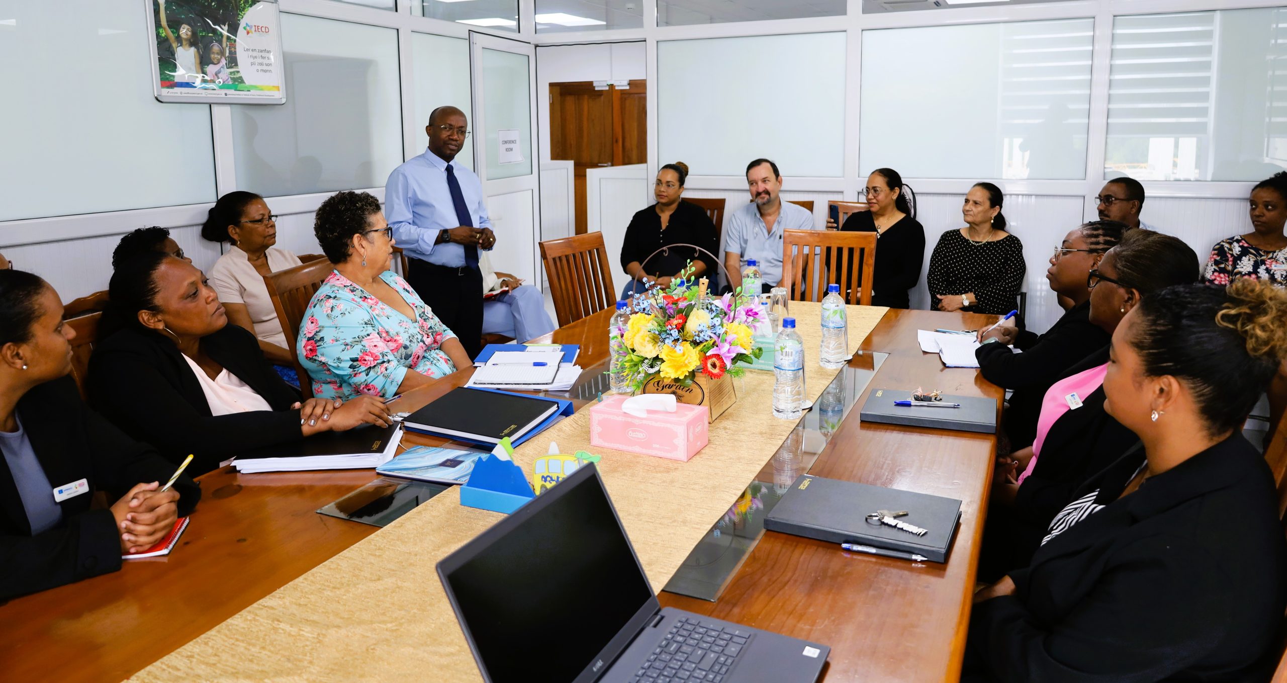 The Minister began his visit by touring the new IECD office and its facilities at Fairview Building in Perseverance, taking the opportunity to greet all the staff and extending his best wishes and compliments for the New Year. It was an excellent opportunity for him to meet the dedicated professionals who work tirelessly for the betterment of early childhood development in Seychelles under the guidance of the CEO and the Board.