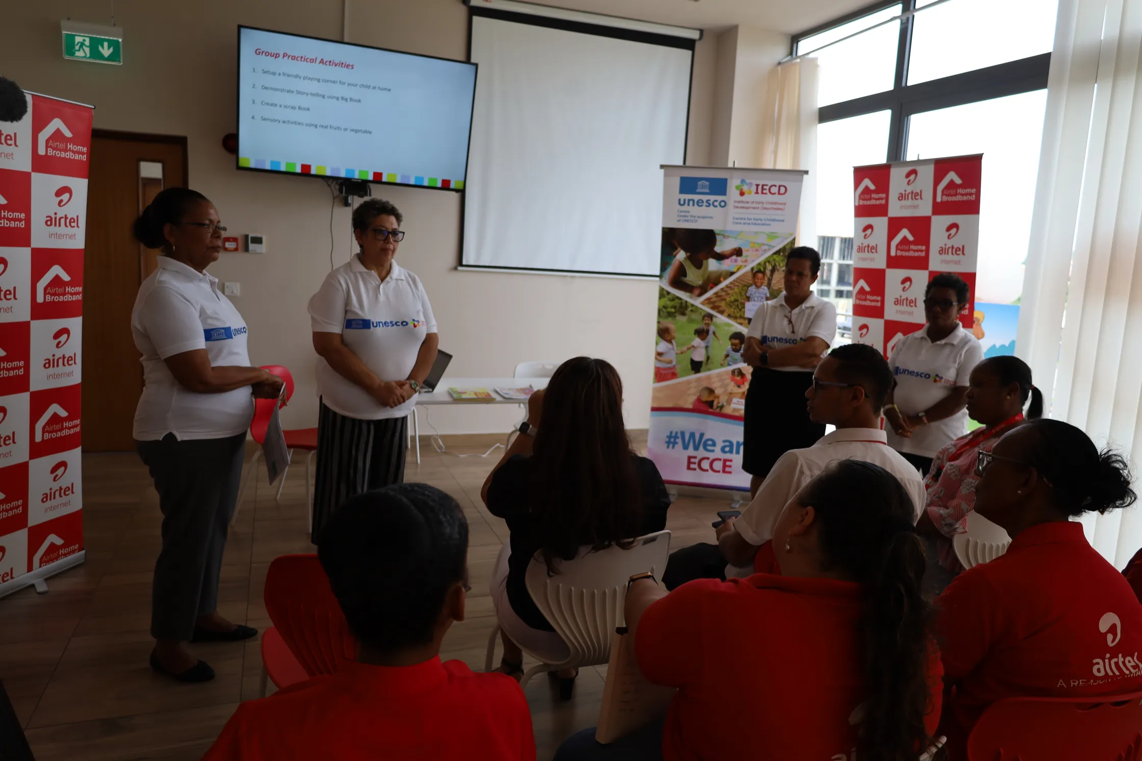 The inaugural session, held on May 31st, 2024, was a huge success, featuring parents from Airtel Seychelles. The interactive session, led by experienced Early Childhood Educators from IECD/UNESCO C2I, covered essential topics such as early simulation, color sorting, numeracy, language, and storytelling. The activities demonstrated the importance of play in a child’s development and provided parents with practical strategies to support their children’s educational growth.