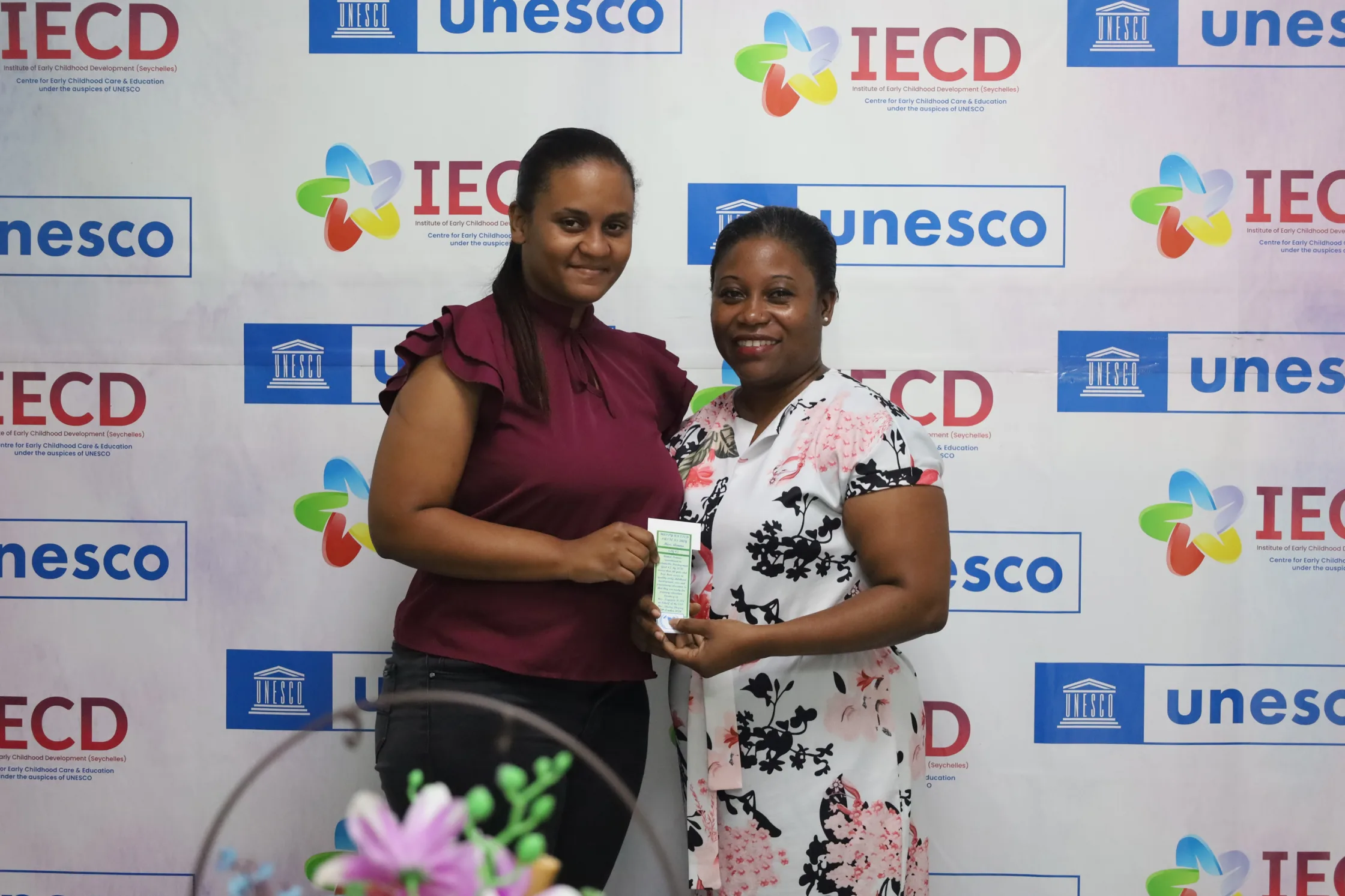 During the event, each staff member received an informative brochure about UN Day, along with a commemorative bookmark. A quiz competition was held to engage staff further, resulting in enthusiastic participation. The winners, Ms. Jacqueline Hoareau from the Support Staff section and Mrs. Ina Barbe from the Technical Staff section, were recognized for their knowledge and presented with prizes.