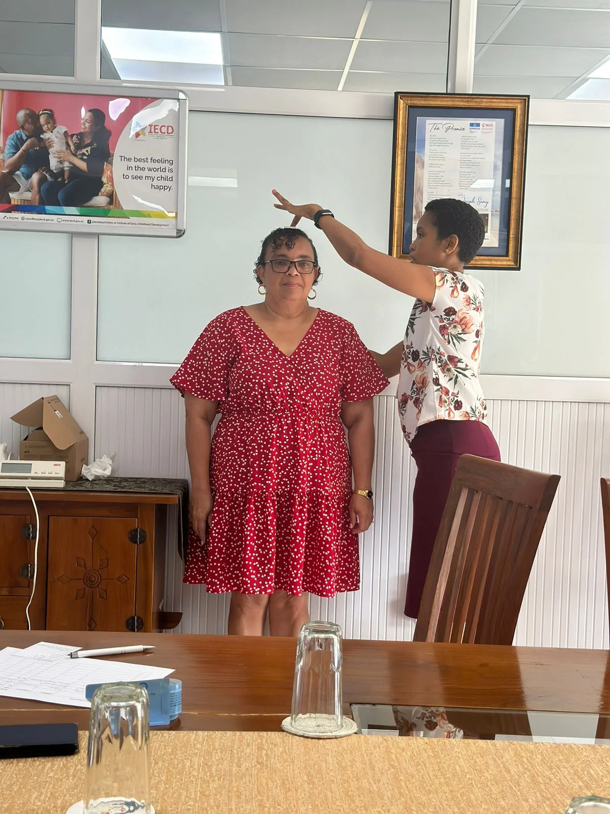Principal Nutritionist, Mrs. Stephanie Desnousse, who conducted the tests with the assistance of Ms. Julitta Fostel, emphasized the importance of a healthy lifestyle. “Through this health screening programme, new health issues detected in staff and some of them were not aware of them,” she said. “We have also identified staff who already had health conditions but were not taking their medication appropriately. We have referred them to health professionals in their respective districts for further care.”