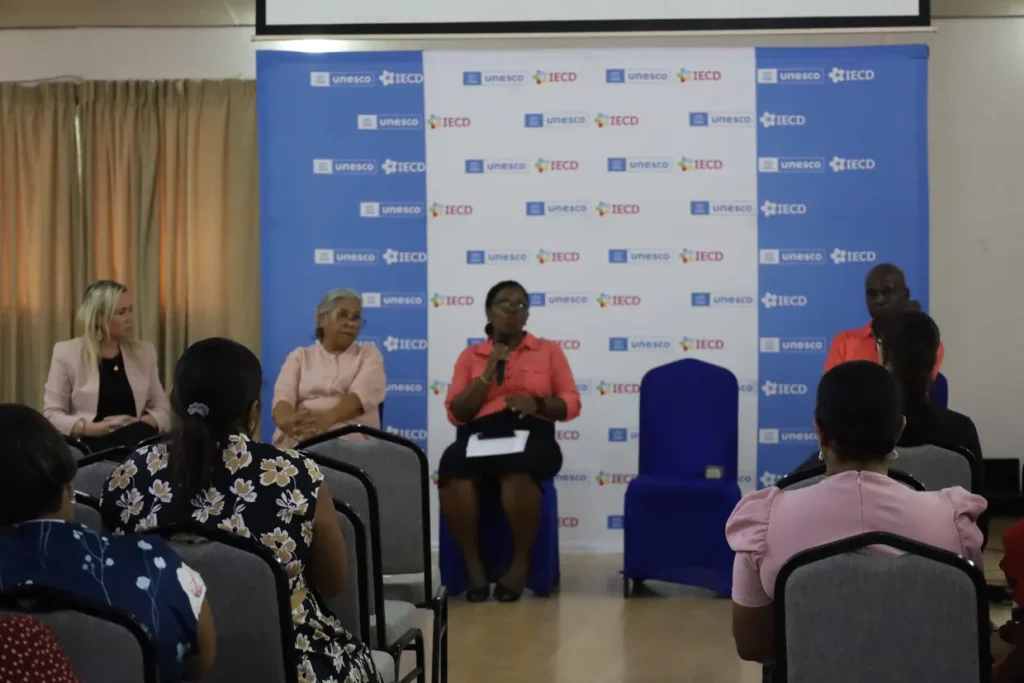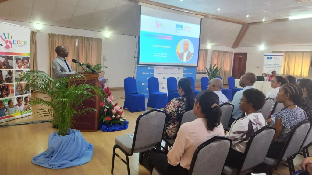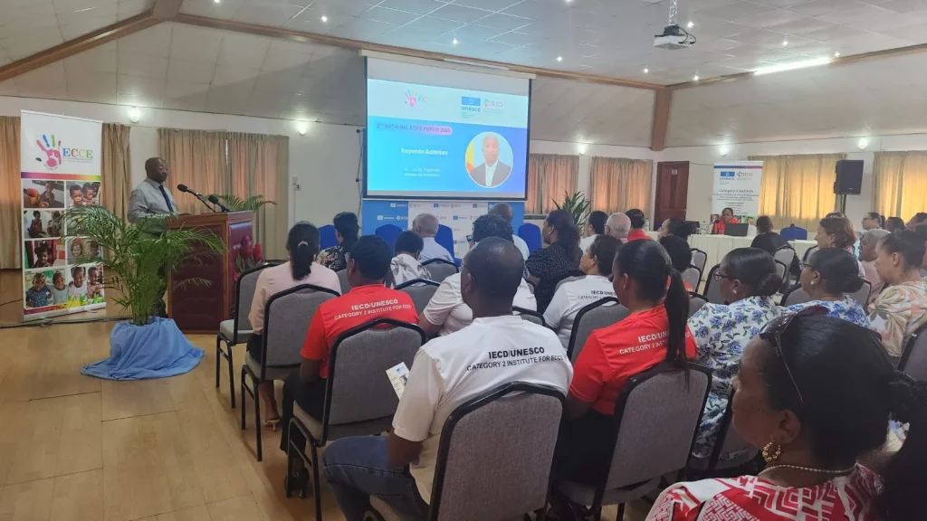 The forum was officially opened by the Minister of Education, Dr. Justin Valentin, in the presence of the Principal Secretary for Education Services, Ms. Merna Eulentin; the Chairman of the IECD Local Board, Dr. Javier Rose; other Board members; ECCE Technical Team members; and various stakeholders and partners in early childhood education.