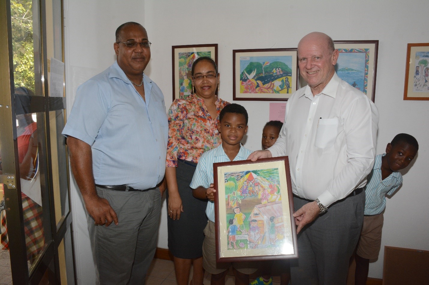 Thirty of the most striking artworks judiciously selected and vetted by two well-known artists, Mr Golbert Nourrice and Mr Robert Alexis were on display. These artworks, reproduced, enlarged and framed, were carefully displayed to bring out the early artistic flair of the young children.