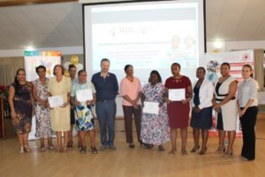 Seven registered Childminders followed two-days of training, in the Red Cross Society office on Praslin, on Basic Paediatric First Aid facilitated by the Red Cross Society of Seychelles. Both groups of Childminders have completed their training and were awarded with their Certificate in a special ceremony on the 30th June on Mahé.