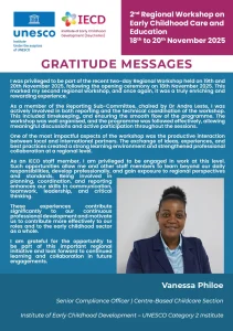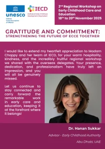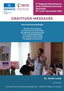 The Institute of Early Childhood Development (IECD), in its role as a UNESCO Category 2 Institute for Early Childhood Care Education, is proud to host the “2nd Regional Workshop on “Progress and Way Forward on the Tashkent Declaration and Commitment to Action for Transforming Early Childhood Care and Education (ECCE).”