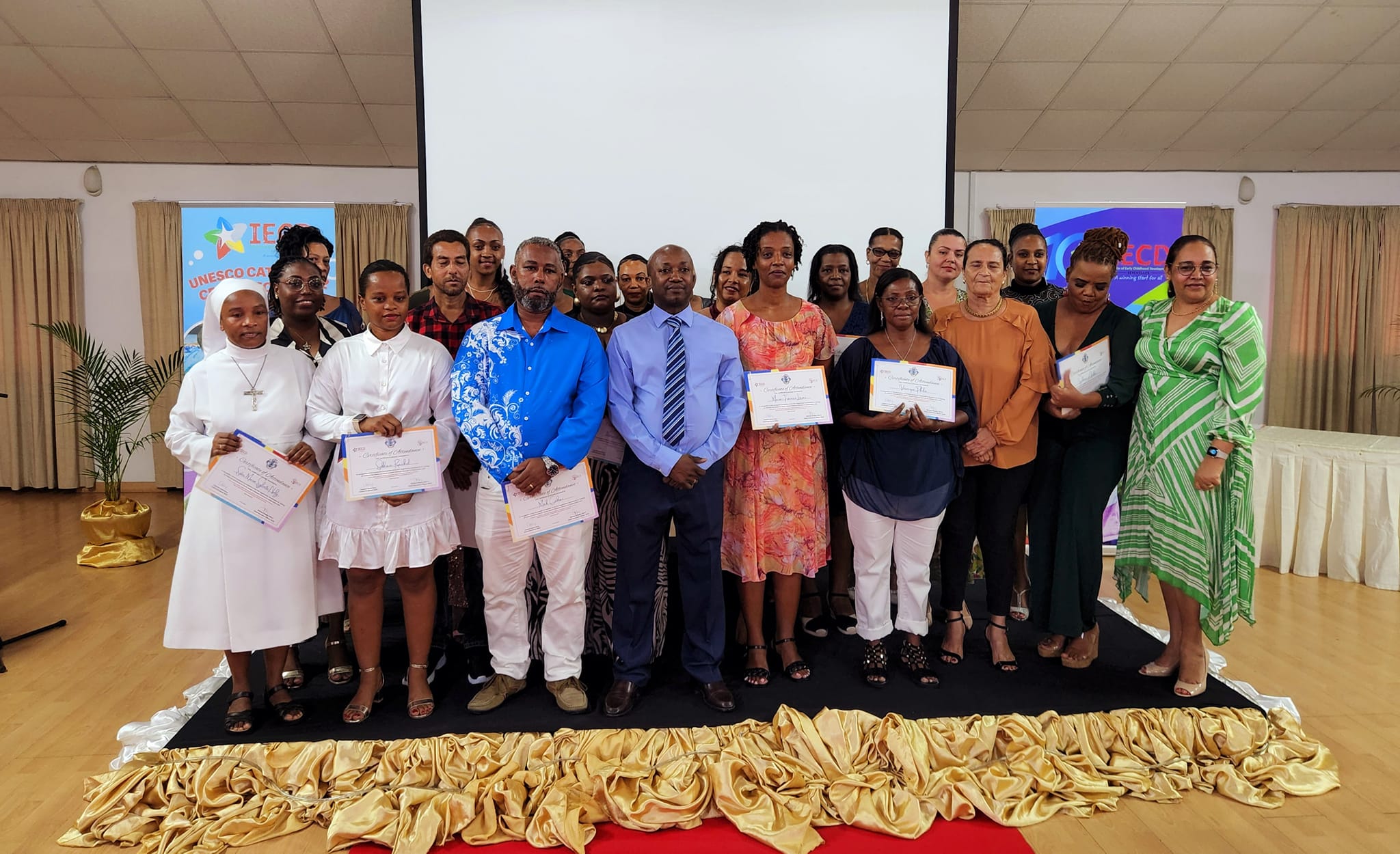 In a ceremony held on Saturday 8th July, 2023 at the Seychelles Trading Company (STC) Conference Room, a group of prospective childcare providers having recently completed their Pre-Registration, Sensitisation and Training Programme with IECD received an insurance voucher worth SCR2000 from H Savy Insurance (HSI). The voucher was presented alongside their certificates of completion of the programme.
