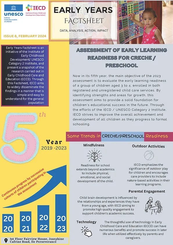 The Early Years Factsheet is a project by the Institute of Early Childhood Development (IECD) / UNESCO Category 2 Institute, showcasing research in Early Childhood Care and Education (ECCE). The goal is to share research findings in a clear and accessible way for the public.