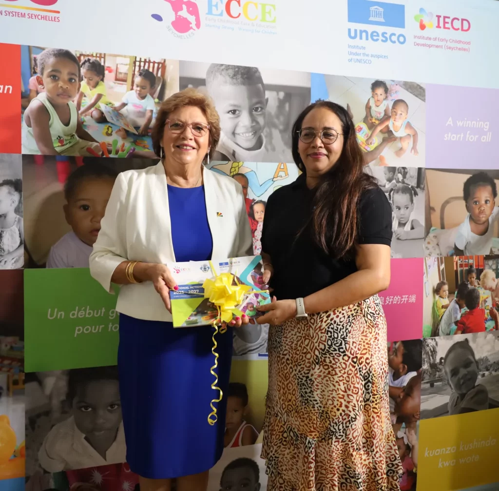 First Lady Linda Ramkalawan received the first copy of the plan on behalf of President Wavel Ramkalawan, reaffirming the nationโs commitment to ensuring every child has access to high-quality early childhood care and education.