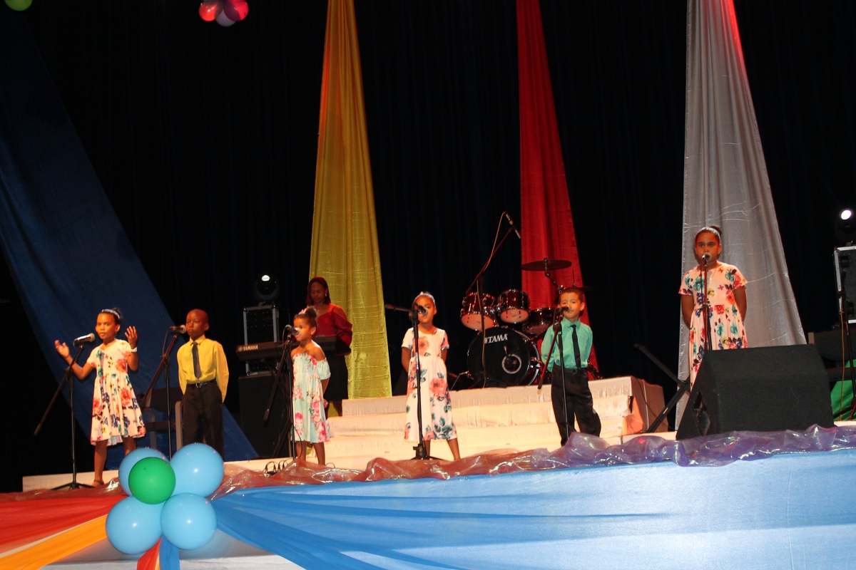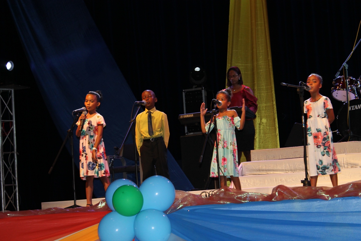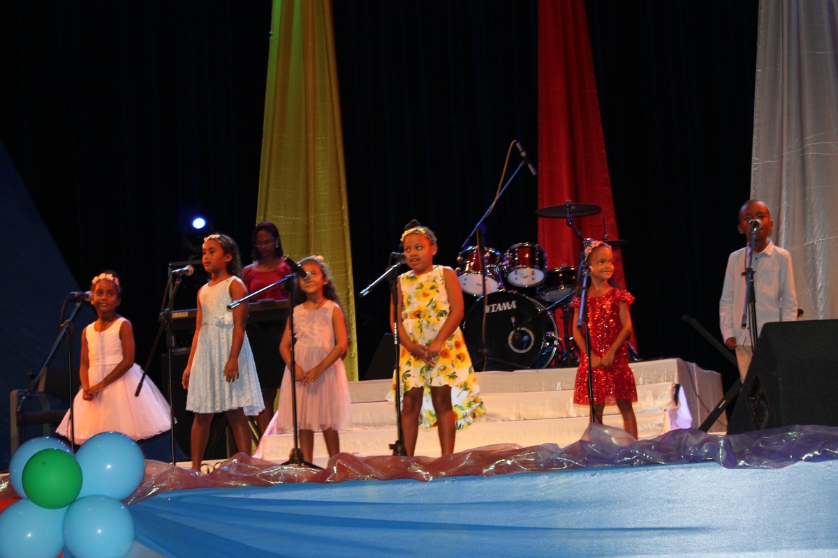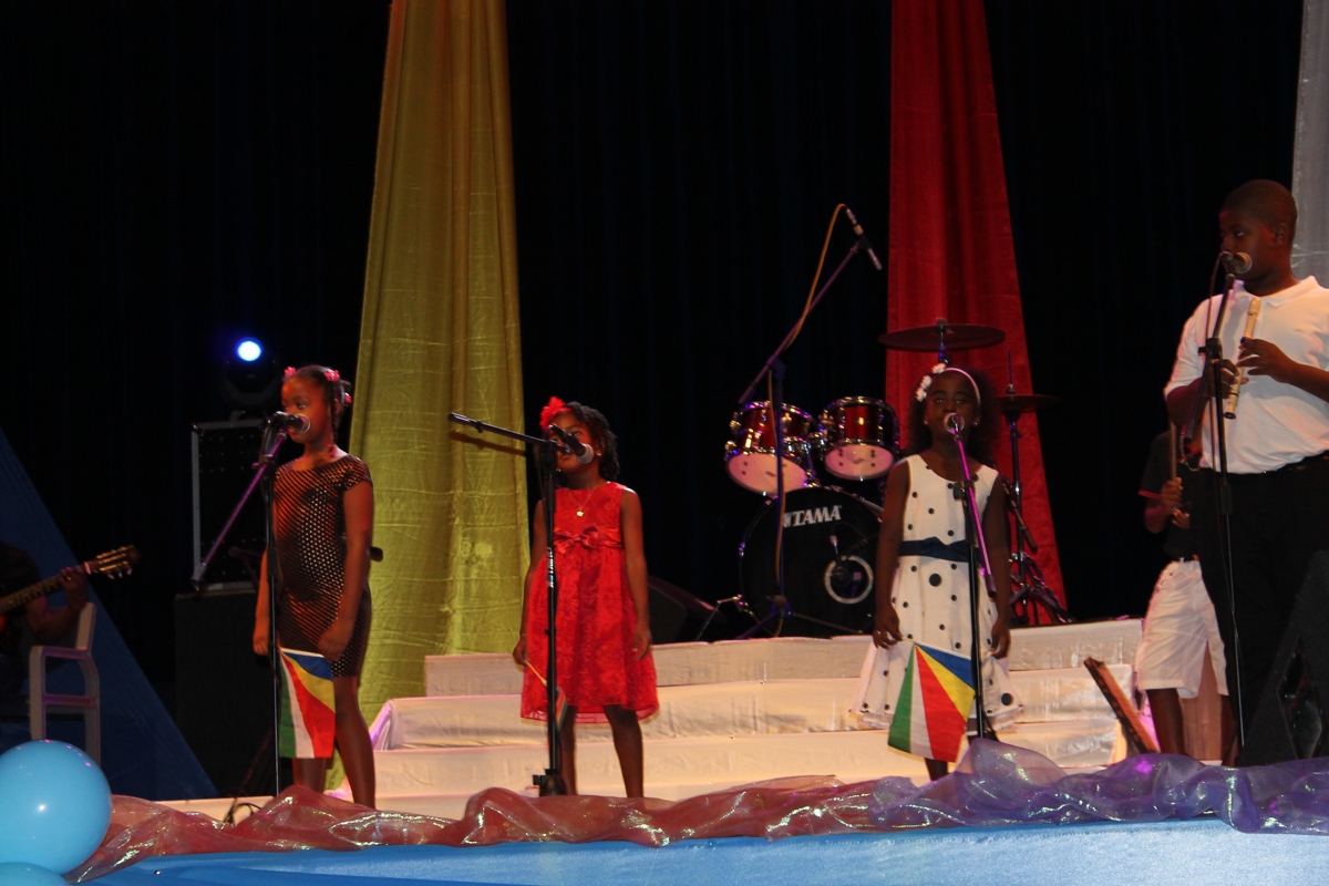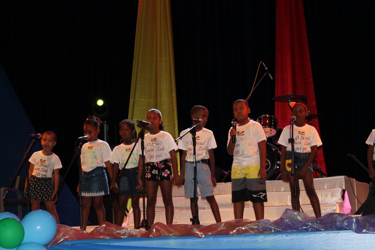 The final show for the Song Competition on the National Theme: Sesel mon pei beni was held on Sunday 11th November 2018. This competition was held in a packed International Conference Centre (ICCS) among whom were the Minister for Education and Human Resource Development, Mrs, Jeanne Simeon, the principal secretary for Social Affairs, Mrs. Linda William-Melanie, Principal Secretary for Youth and Sports, Mr. Fabian Palmyre, the Chief Executive Officer of the IECD, Mrs. Shirley Choppy, the chairperson of the National Theme Steering Committee, Mr. Jude Fred, sponsors, other guests, parents, teachers and members of the public. There were eleven schools in the final out of the 24 primary schools which participated at the beginning. They were Anse Aux Pins, Anse Etoile, Bel Ombre, Baie Lazare, Cascade, Grand Anse Praslin, Glacis, Independent school, La Digue, Perseverance North Primary and Takamaka.