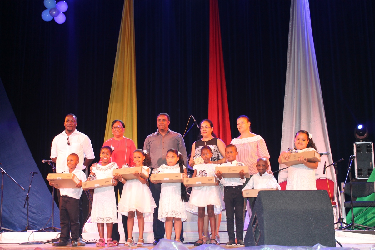Second prize which was a Samsung Galaxy Tablet Lite sponsored Captain David Savy and educational books sponsored by IECD went to Cascade Primary School with their song, ‘Mon pei’ and third prize which was a Collins English Dictionary and story books sponsored by the Ministry of Education and Human Resource Development and Four Yamaha Recorders sponsored by Abhaye Valabhji PTY LTD was won by Grand Anse Praslin primary school with their song, ‘Sesel nou zoli pti pei’.